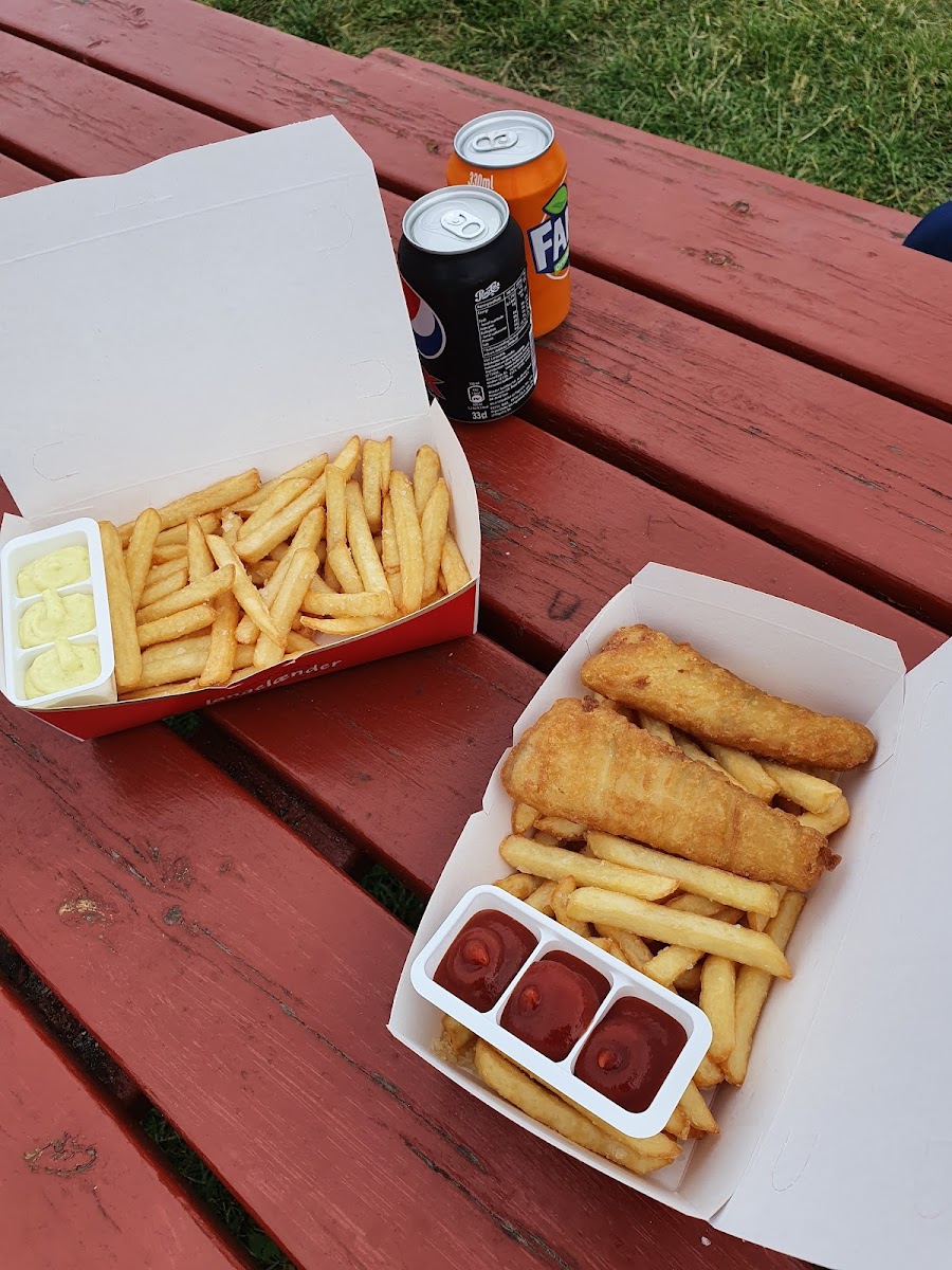 Super lækre sprøde fisk serveret sprøde og dampende varme pomfritter et dejligt måltid efter en kold dukkert