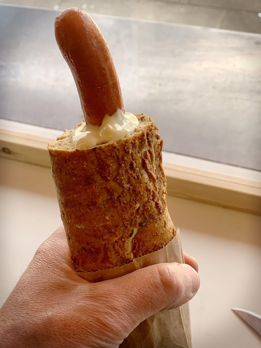 Fransk hotdog med langelænder pølser og frisk brød fra humble bageri